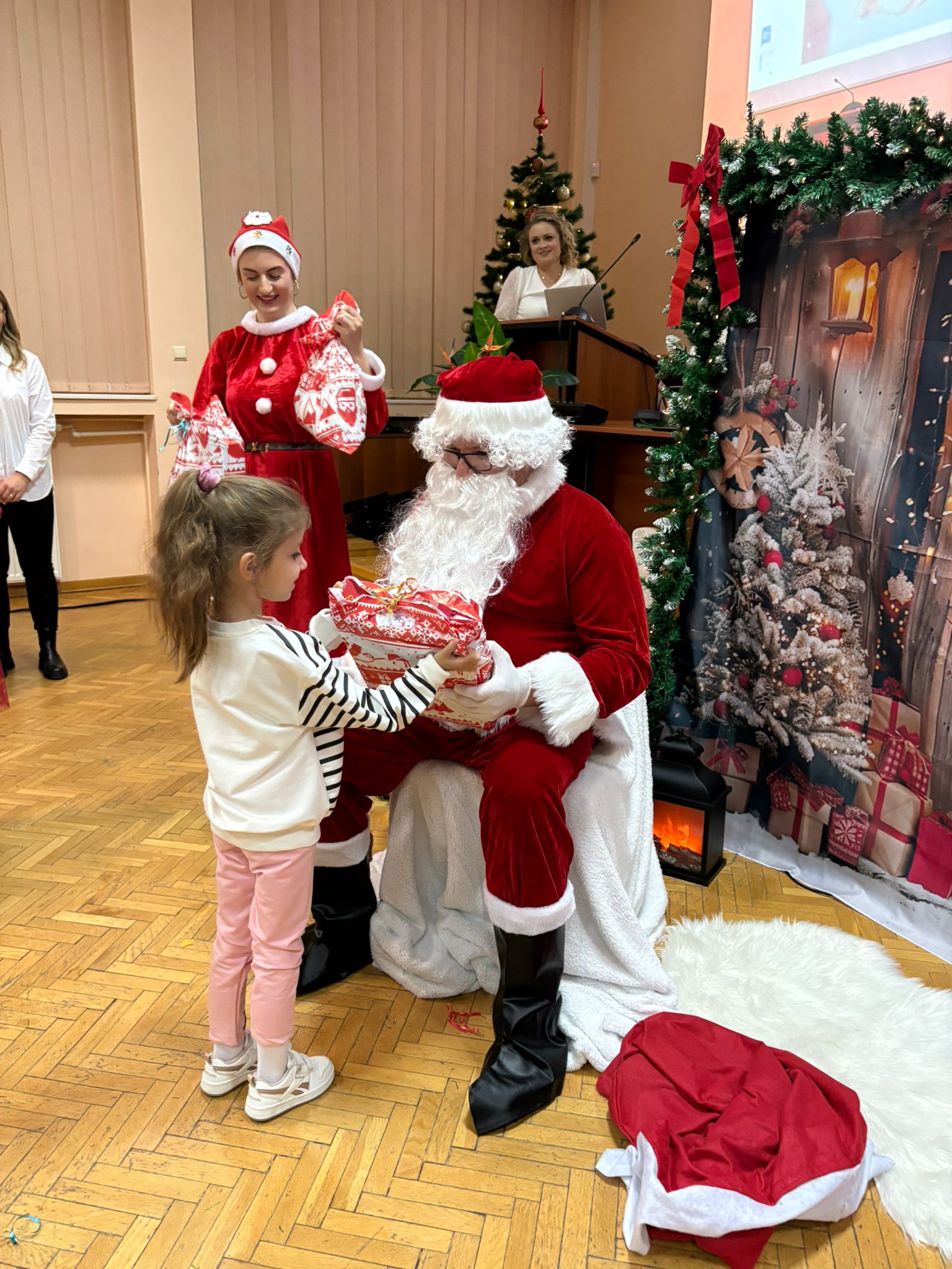 Główną atrakcją przygotowaną z myślą o wychowankach rodzinnej pieczy zastępczej była wizyta Świętego Mikołaja z prezentami. Jego przybycie wywołało wiele radości i uśmiechów na twarzach dzieci, młodzieży oraz pełnoletnich wychowanków. Mikołaj chętnie rozmawiał z uczestnikami, pozował do pamiątkowych zdjęć oraz wręczał upominki, tworząc wyjątkową pełną ciepła i życzliwości atmosferę.