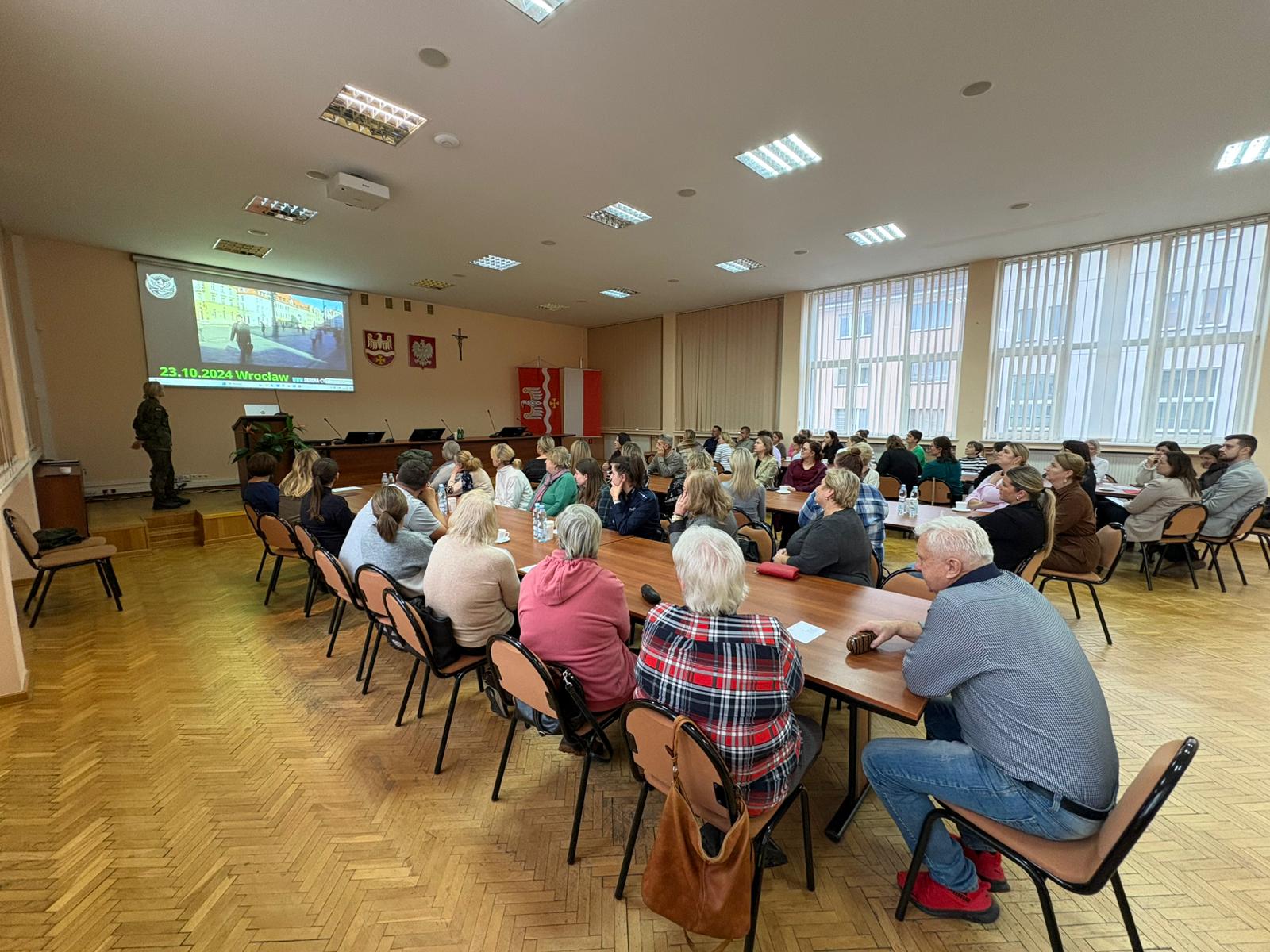 Pierwszą część szkolenia poprowadziła Pani Urszula Badura z Wojskowego Centrum Rekrutacji w Bielsku Podlaskim. Prelekcja pt. „Ochrona ludności – omówienie priorytetowego wyposażenia plecaka ewakuacyjnego oraz praktyczne wskazówki dotyczące zastosowania jego zawartości” obejmowała prezentację niezbędnych elementów wyposażenia, które powinny znaleźć się w tzw. plecaku ewakuacyjnym. Uczestnicy dowiedzieli się, jak przygotować się na sytuacje kryzysowe oraz jak wykorzystać poszczególne elementy wyposażenia w praktyce.