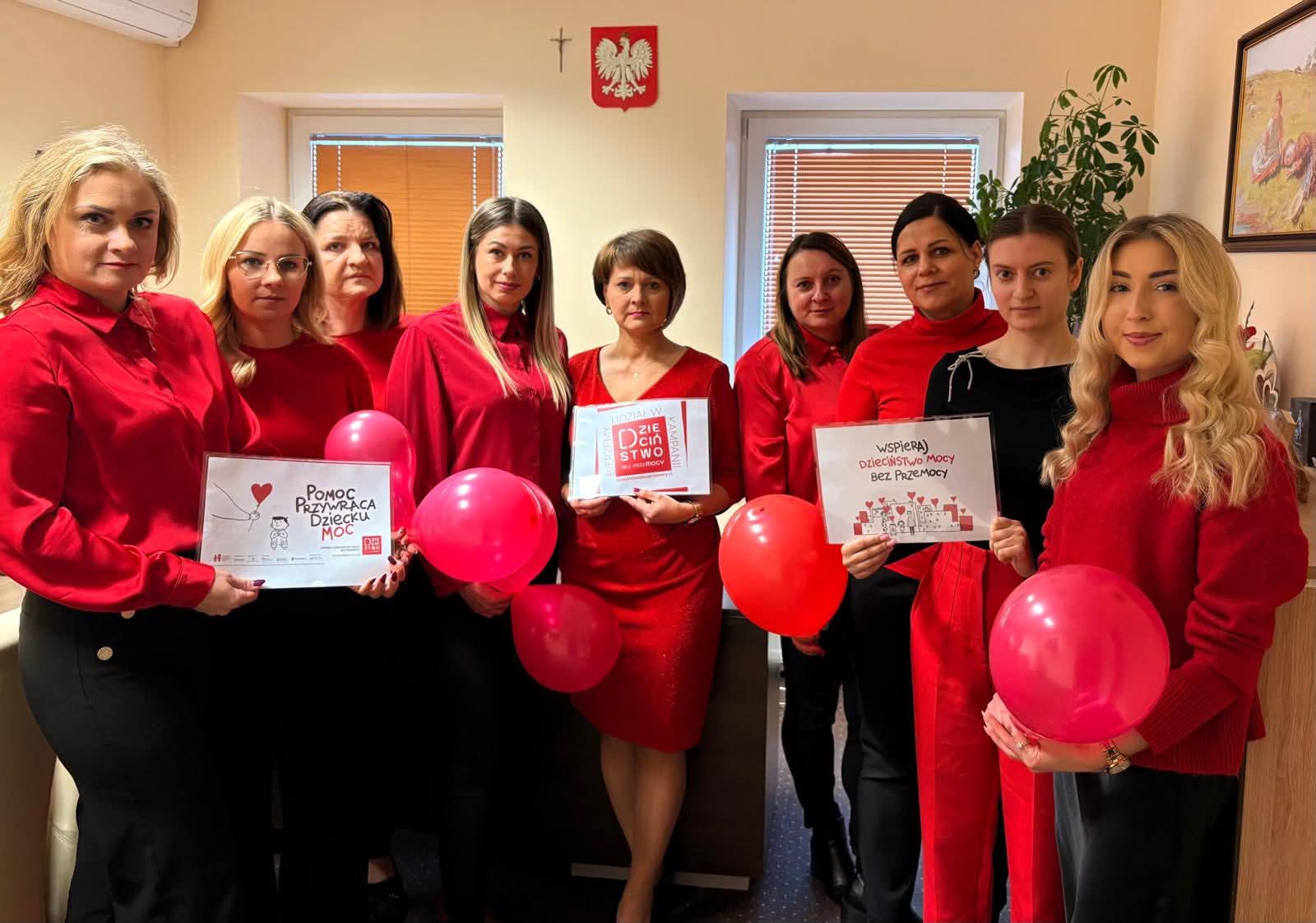 Na znak solidarności z ideą kampanii pracownicy PCPR ubrali się na czerwono, aby wspólnie zamanifestować sprzeciw wobec przemocy i uwrażliwić się na ten ważny problem.